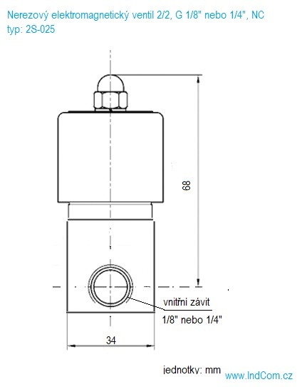 | Typ | 2/2 bez napětí uzavřený (NC) |
