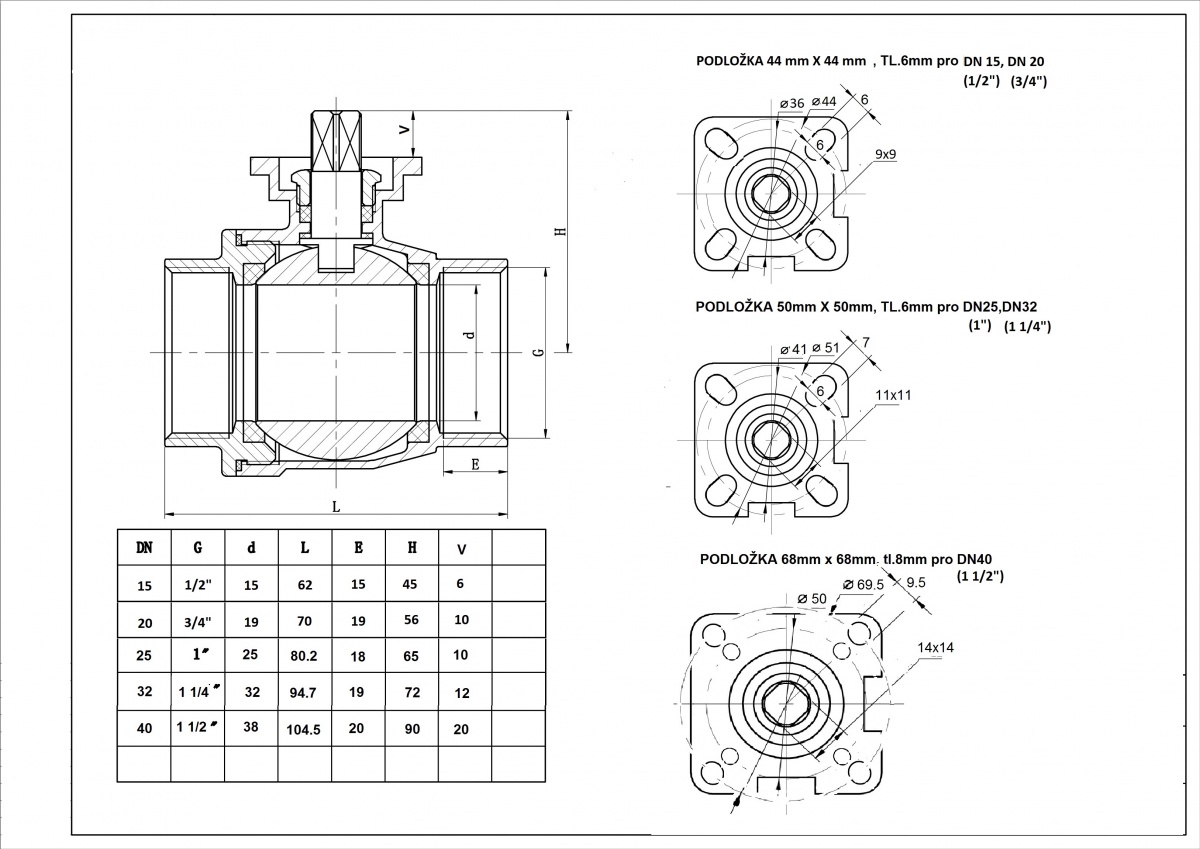 | Materiál | tělo a koule 1.4301 (AISI 304), sedlo PTFE, těsnění dříku PTFE (podrobné materiálové složení – viz přílohy) |