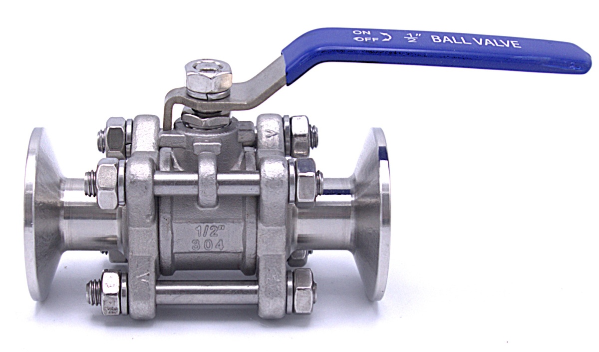 Nerezový kulový kohout s plným průtokem, třídílný, CLAMP