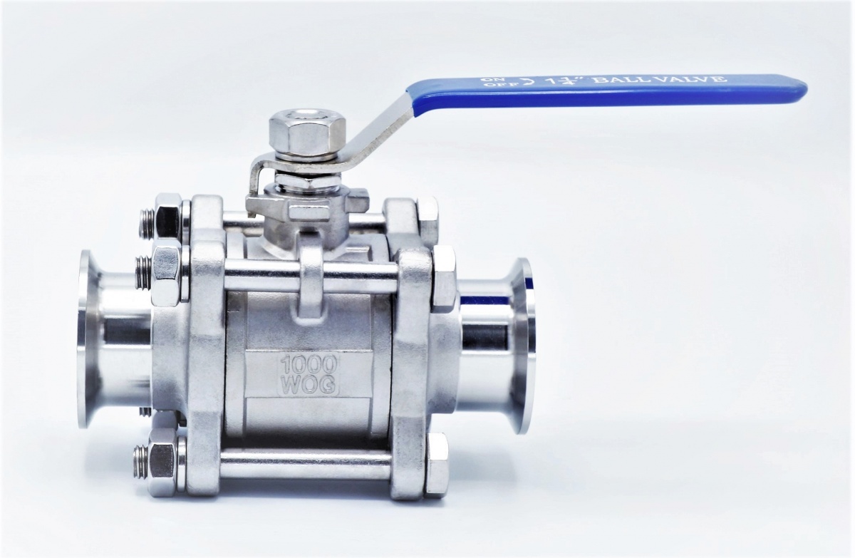 Nerezový kulový kohout s plným průtokem, třídílný, CLAMP