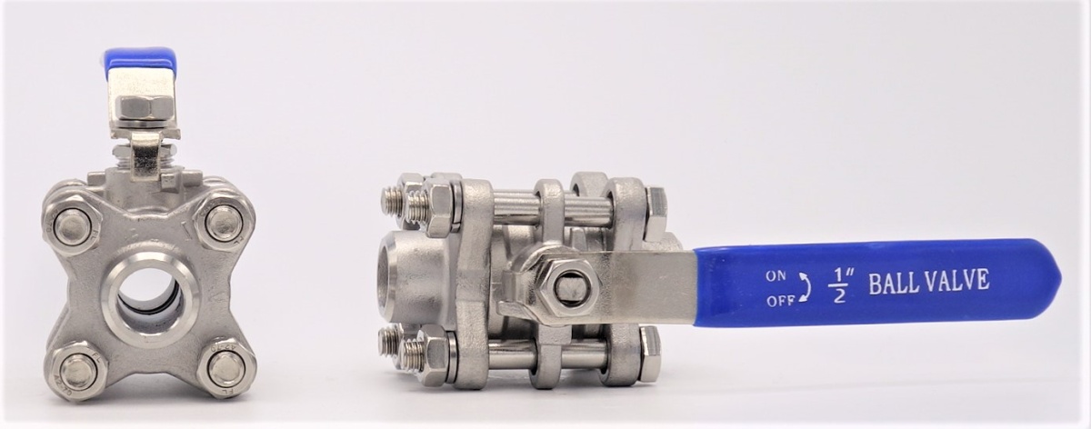 Nerezový kulový kohout s plným průtokem, třídílný, navařovací