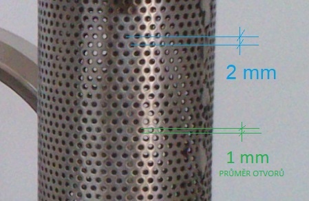| Filtr | perforovaný plech, průměr otvorů 1 mm, osová vzdálenost otvorů 2 mm |