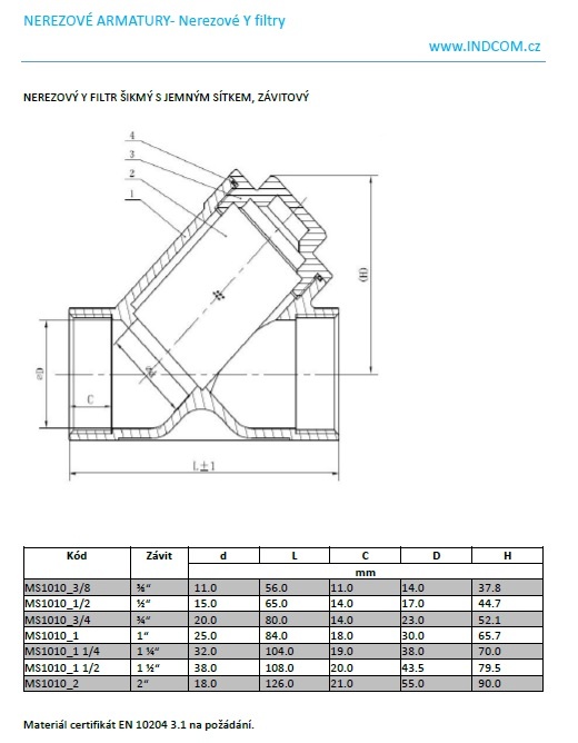 Nerezový Y filtr šikmý s jemným sítkem, závitový
