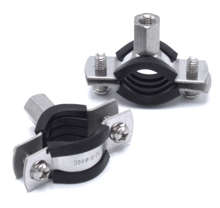 Objímka potrubní s gumovou vložkou EPDM, dvoušroubová, nerezová ocel 1.4301, M8
