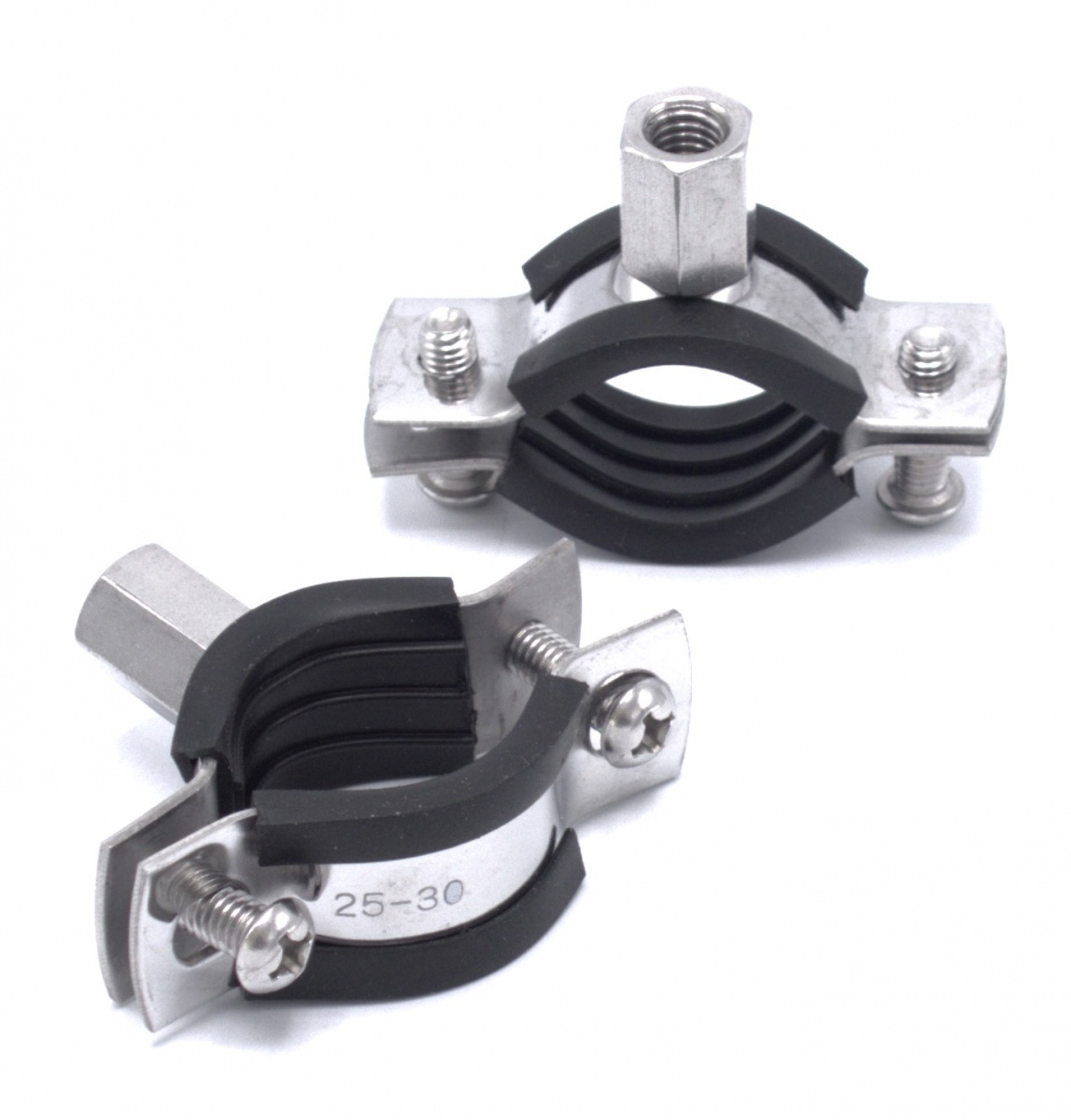 Trubková objímka s gumovou vložkou EPDM, rozsah upínání 25-30 mm, dvoušroubová (držák potrubí, instalační trubky)