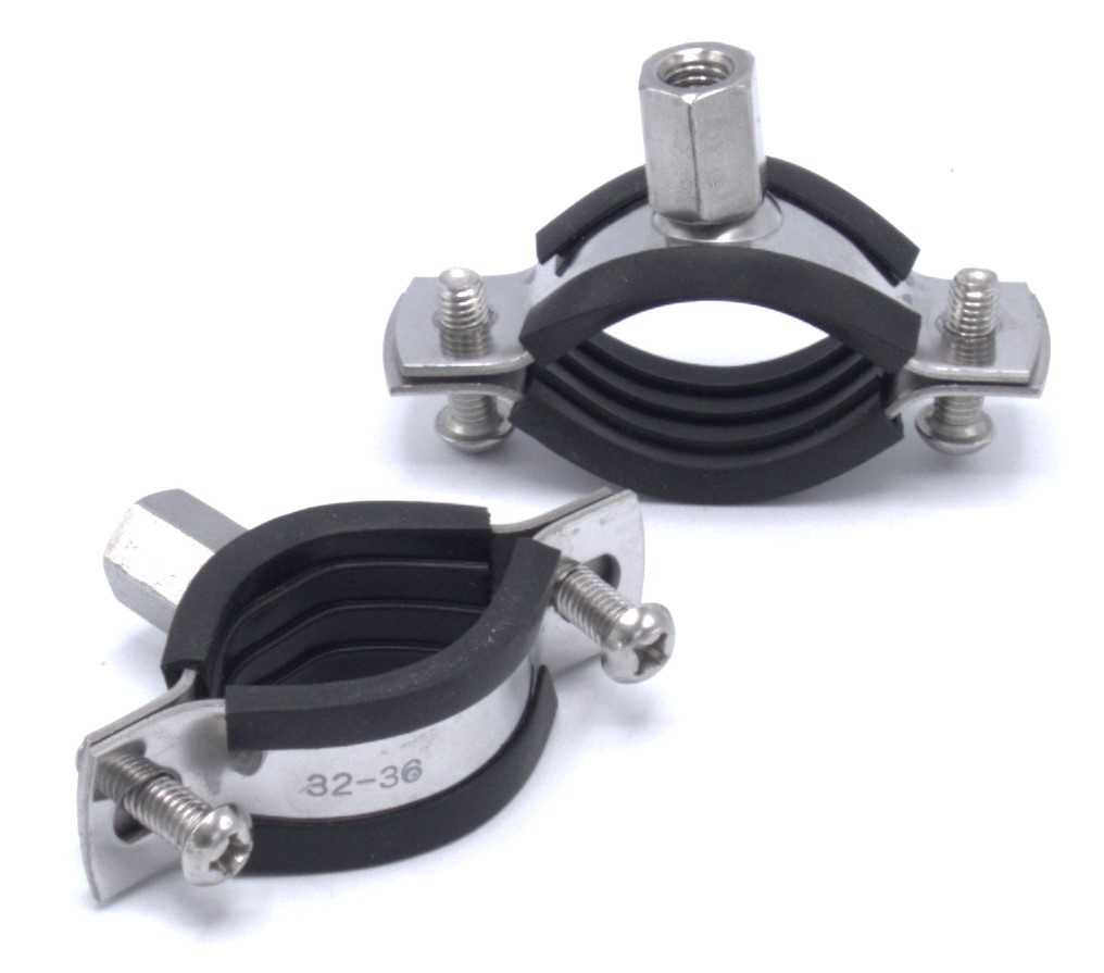 Trubková objímka s gumovou vložkou EPDM, rozsah upínání 32-36 mm, dvoušroubová (držák potrubí, instalační trubky)