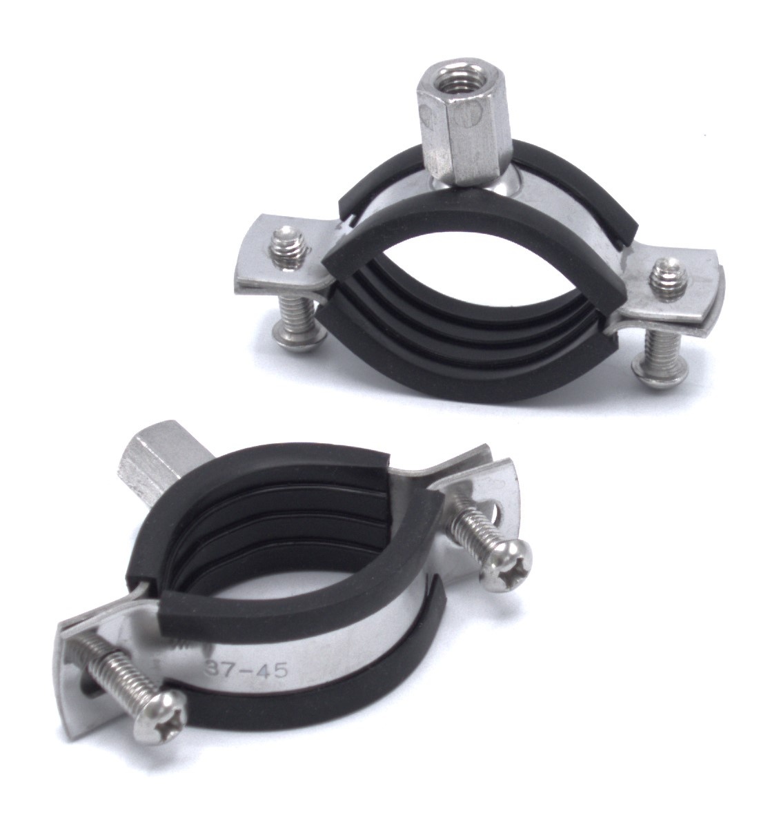 Trubková objímka s gumovou vložkou EPDM, rozsah upínání 37-45 mm, dvoušroubová (držák potrubí, instalační trubky)