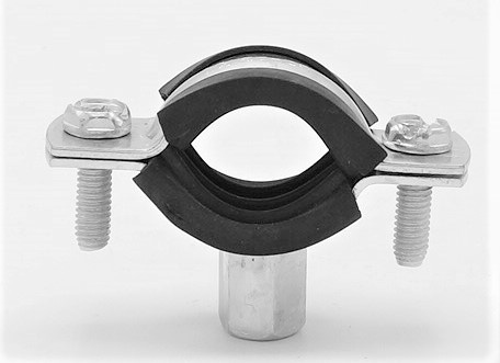 Trubková objímka s gumovou vložkou EPDM, pozinkovaná, rozsah upínání 20-25 mm, dvoušroubová (držák potrubí, instalační trubky)