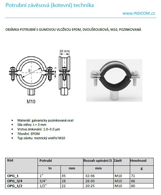 Vlastnosti potrubních objímek