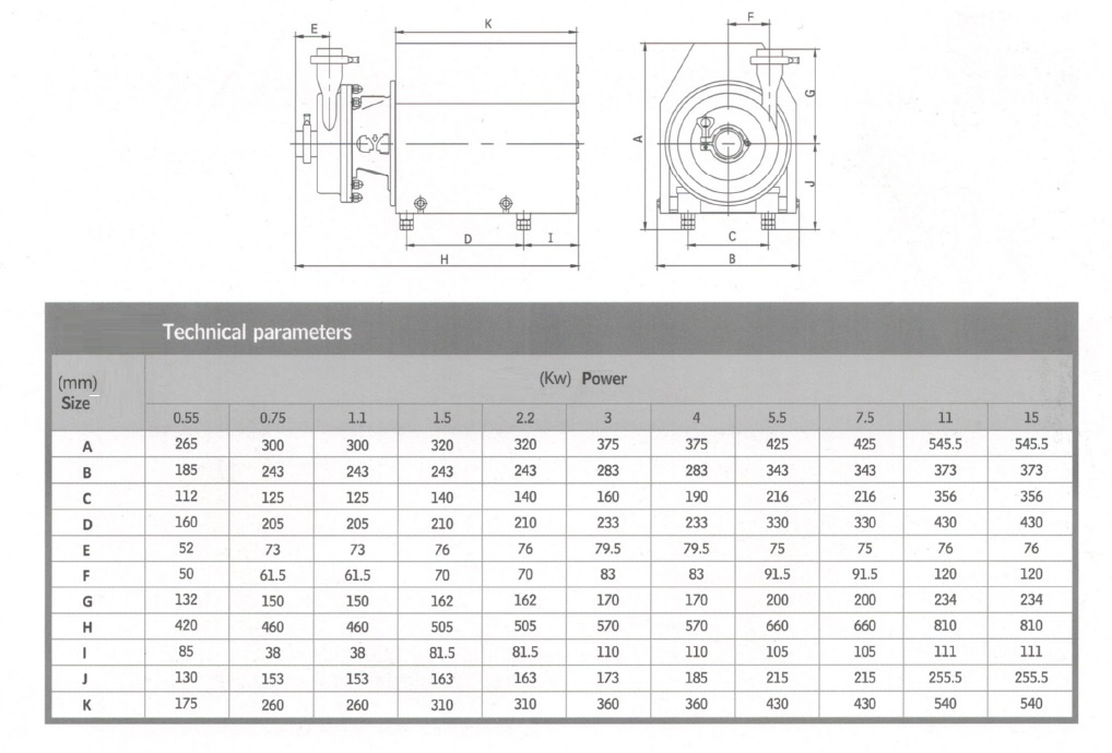 Odstředivé čerpadlo s otevřeným oběžným kolem, 0.55 KW