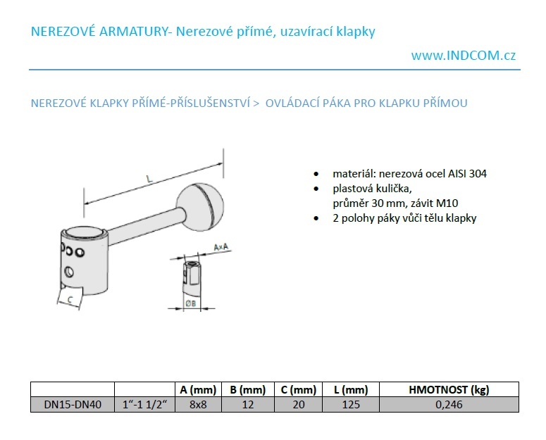 Ovládací páka nerezová pro klapku přímou DN15 až DN40 z naší nabídky.