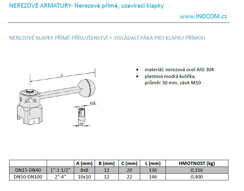 Ovládací páka nerezová pro klapku přímou DN15 až DN40 z naší nabídky.