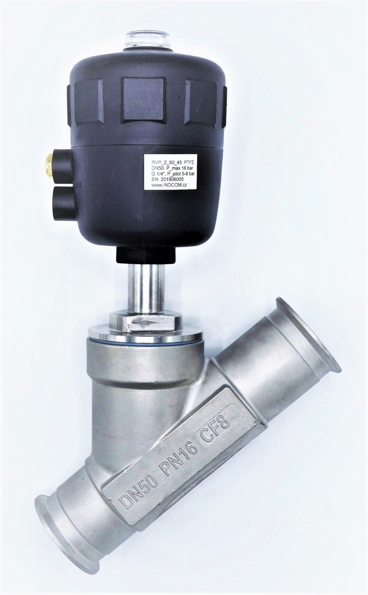 Pneumaticky ovládaný ventil se šikmým sedlem- 45°
