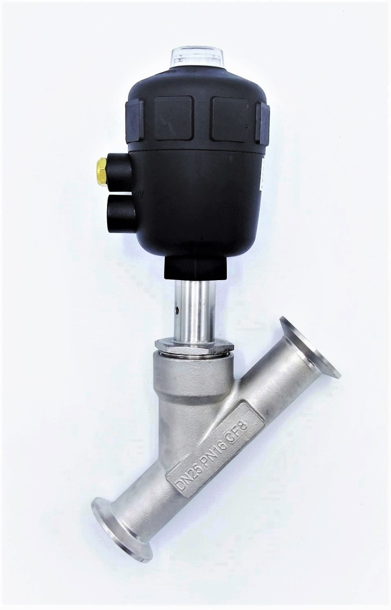 Pneumaticky ovládaný ventil se šikmým sedlem-45°, clamp