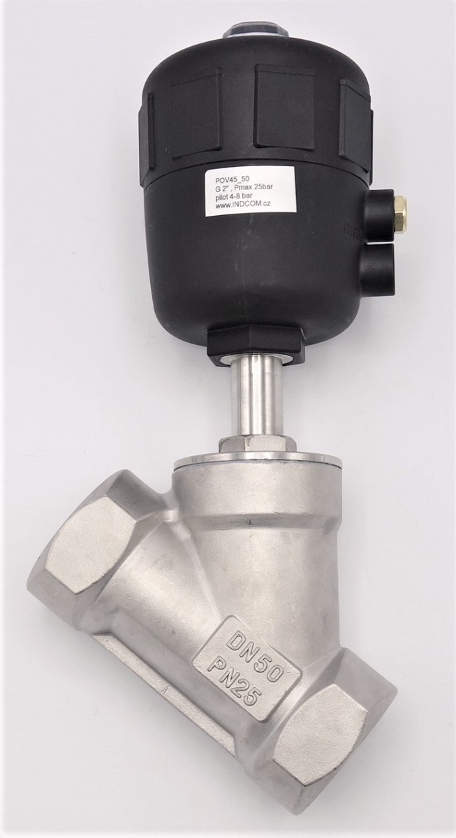 Pneumaticky ovládaný ventil se šikmým sedlem- 45°