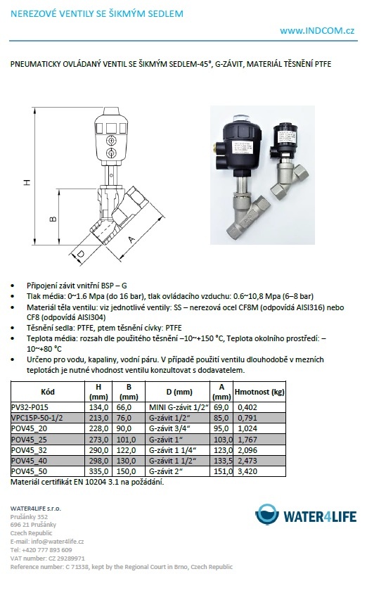 • materiál těla ventilu: viz jednotlivé ventily: SS - nerezová ocel CF8M (odpovídí AISI316) nebo CF8 (odpovídí AISI304)