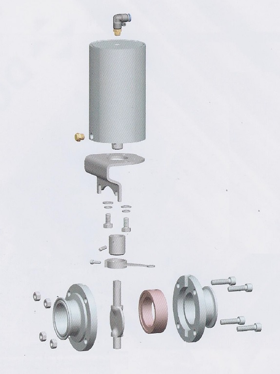 Pneumatický jednočinný pohon (vzduch/pružina) slouží pro otevírání a uzavírání přímých klapek tlakovým vzduchem (doporučená hodnota pro bezpečné otevření klapky je 5 – 8Bar). Pružina pneumatického pohonu slouží pro uzavření přímé klapky (bez tlaku ovládacího vzduchu), či v případě poklesu ovládacího tlaku vzduchu pro bezpečné uzavření ventilu (klapky).