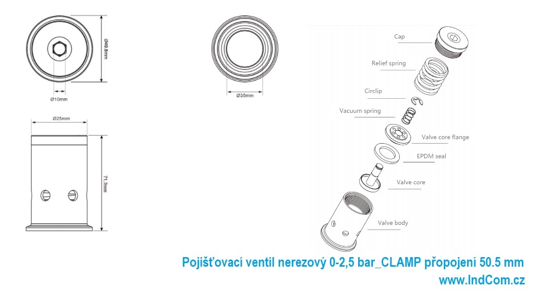 Pojišťovací ventil nerezový 0-2,5 bar_CLAMP přopojení 50.5 mm
