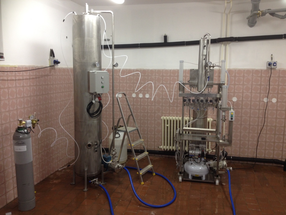 - tlak v akumulační nádrži plnící linky je nastaven uživatelem dle tlaku v ležáckém tanku