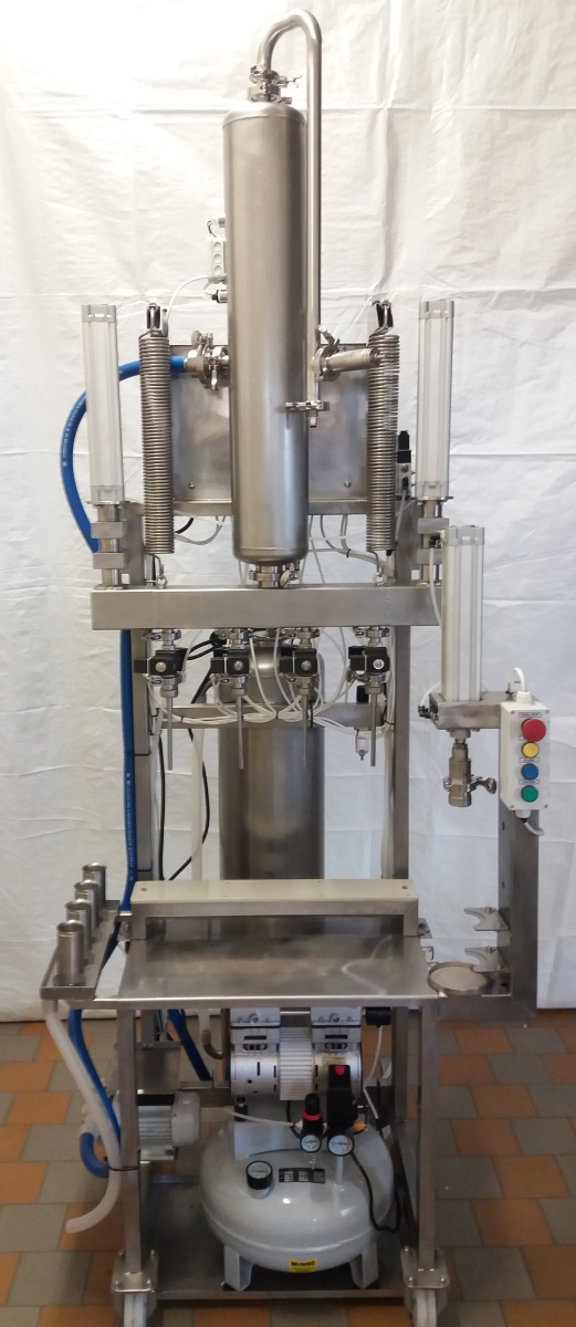 • tlak v akumulační nádrži plnící linky může být uživatelem nastaven dle tlaku v ležáckém tanku za pomoci externí láhve s CO2 + regulátor tlaku, který není předmětem dodávky