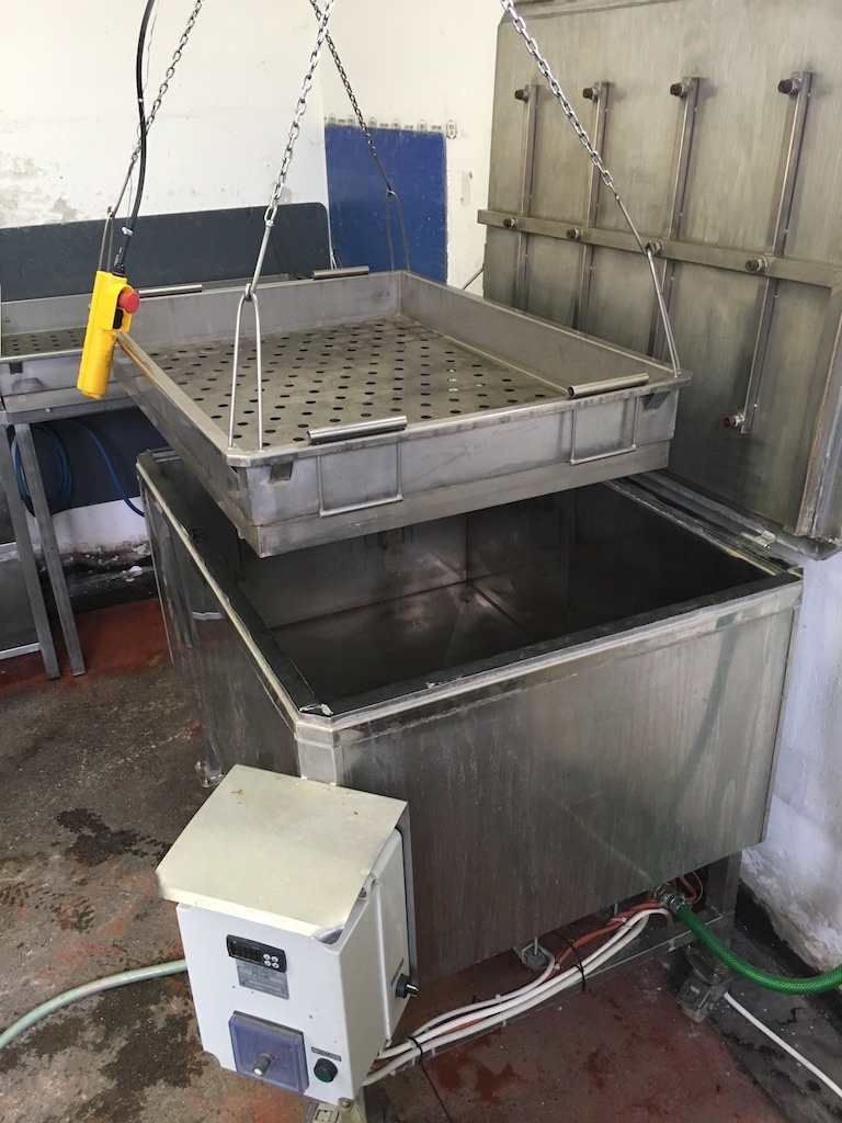 Příklad pasterizace cideru: 190 lahví o objemu 330ml- pasterizační cyklus trvá 45 minut. Možnost použití na láhve 330ml - 1000ml. Nerezové koše je možné upravit dle požadavku zákazníka.