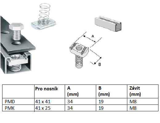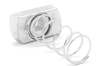 Posuvná matice M8 s pružinou pozinkovaná, dlouhá pružina pro nosník 41x41