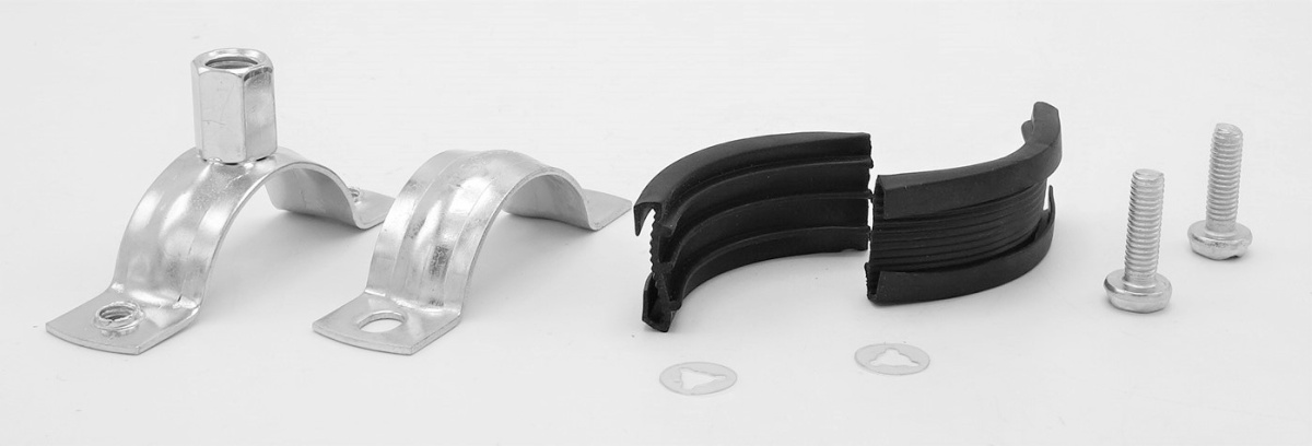 Potrubní objímka s gumovou vložkou EPDM, dvoušroubová (držák potrubí, instalační trubky)