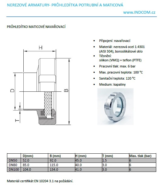 | Materiál | nerezová ocel 1.4301 (AISI 304), borosilikátové sklo |