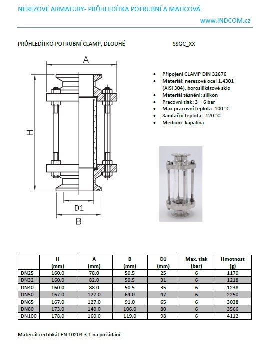 | Materiál | SS - nerezová ocel 1.4301 (AISI 304), borosilikátové sklo |