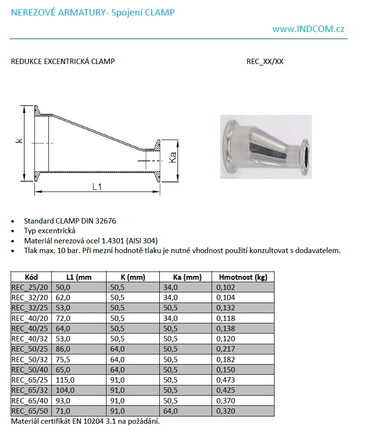 Redukce excentrická, clamp