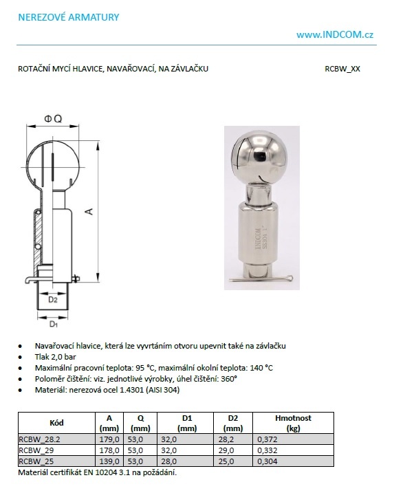 - Materiál: nerezová ocel 1.4301 (AISI 304)