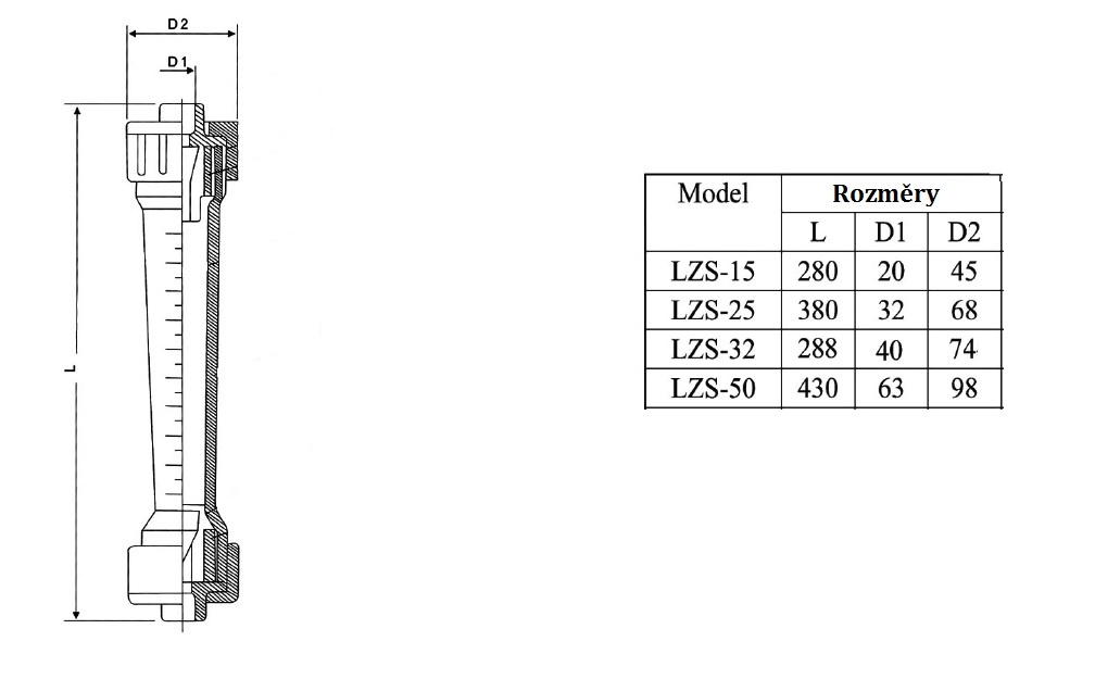 Plováčkový průtokoměr /rotametr/ plastový-lepený spoj