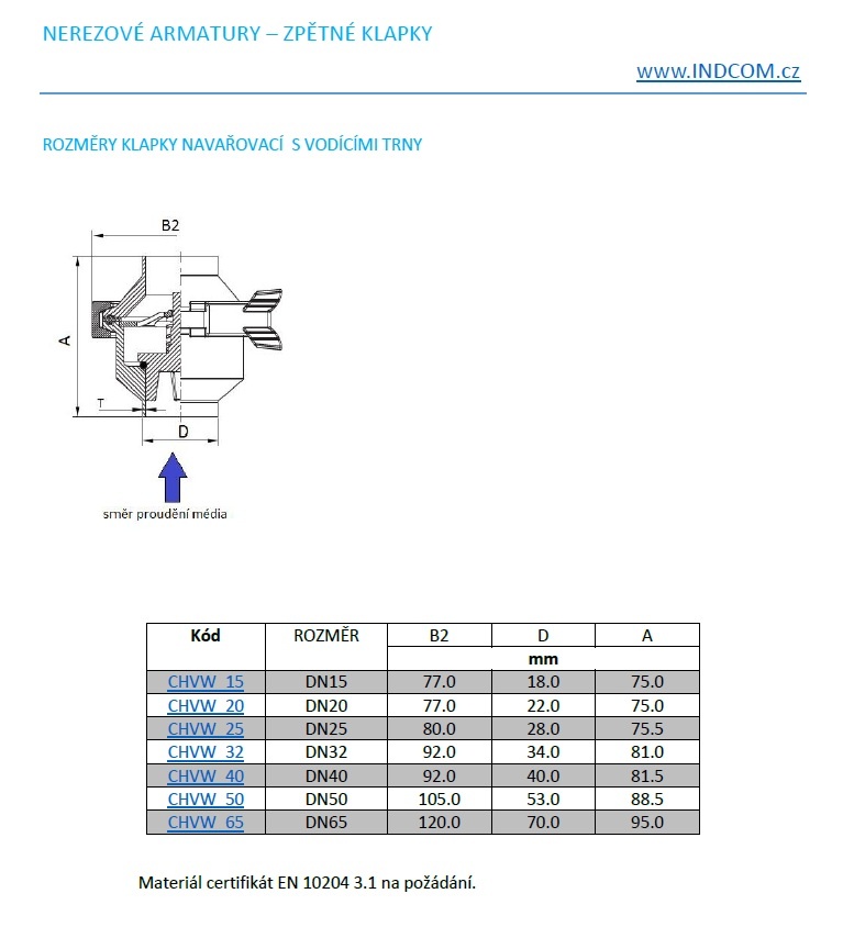 | Standard | navařovací DIN11850-řada1, DN32 |