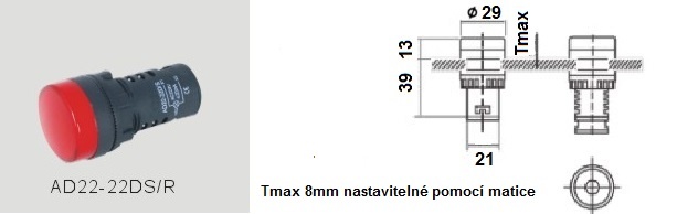 • montážní průměr kontrolky: 22 mm