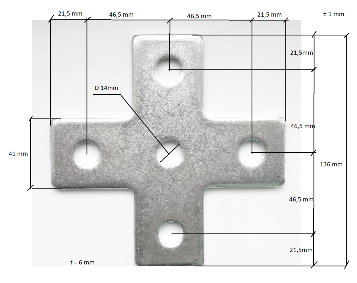 Spojky jsou vyrobeny z galvanicky pozinkované oceli. Používají se k sestavení jednoduchých konstrukcí z montážních lišt.