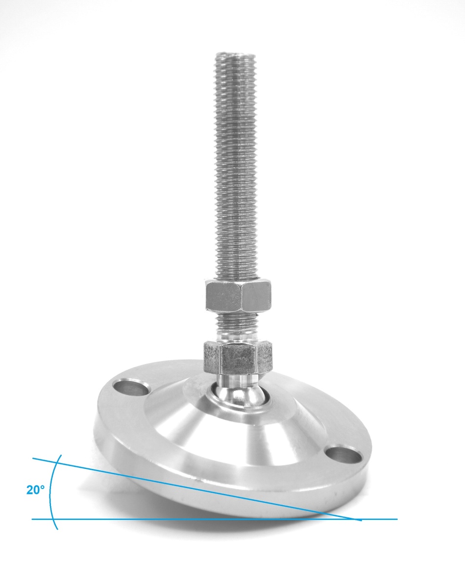 Kloub umožňuje vychýlení ±10°. Nožka tedy vyrovná max. 20°.