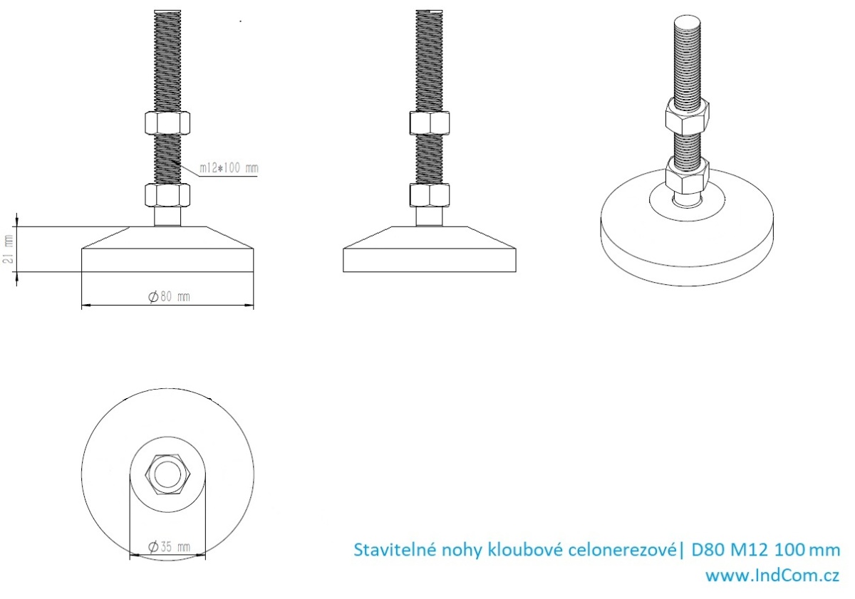 Stavitelné nohy kloubové celonerezové průměr podložky nohy 80 mm, šroubovice M12, délka šroubovice 100 mm.