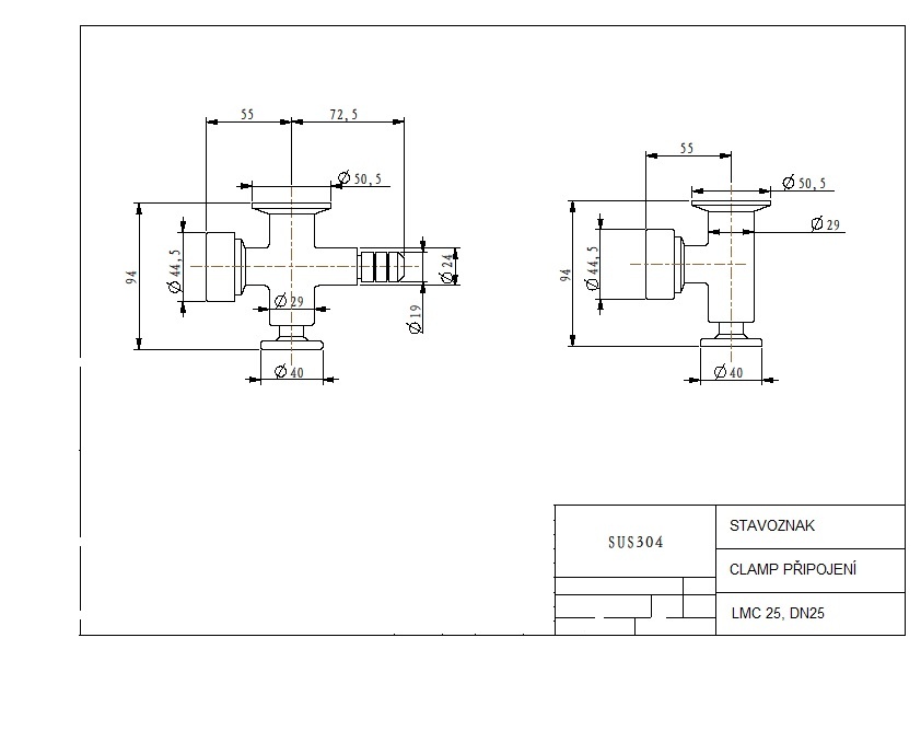 | Připojení | clamp DN25, límeček 50.5 mm |