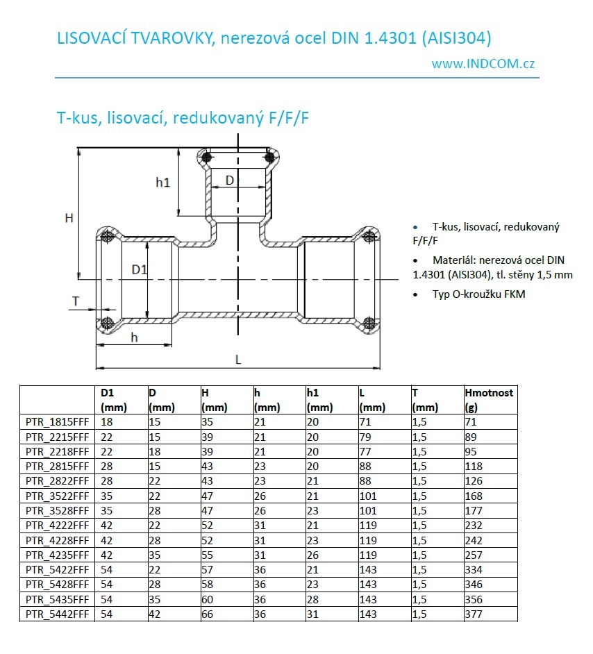 - Materiál nerezová ocel DIN 1.4301 (AISI304)