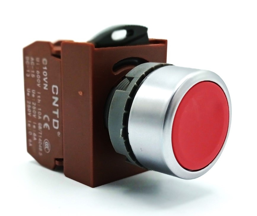 Tlačítko neprosvětlené - červené, 1x NO kontakt