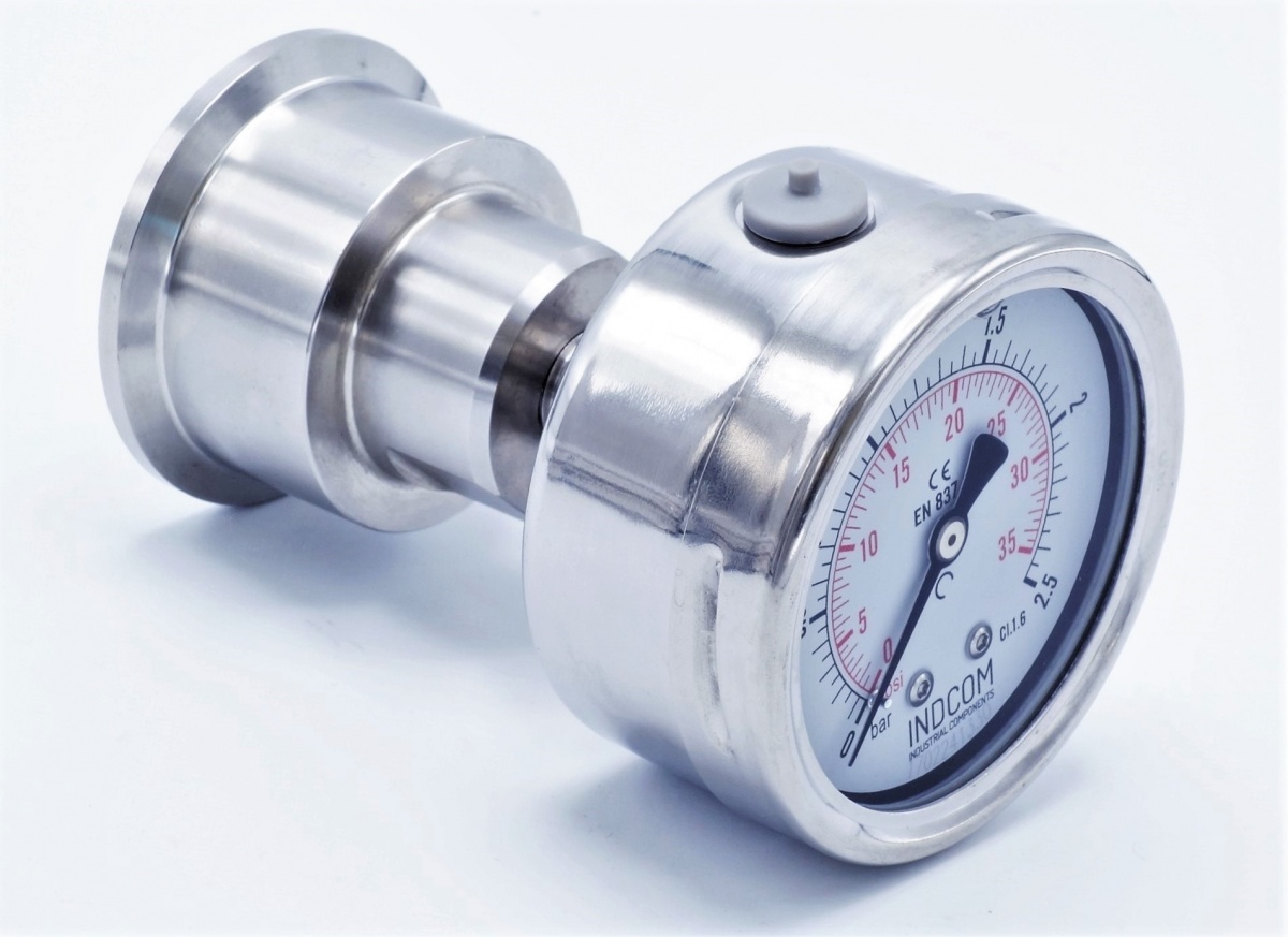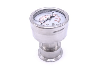 Tlakoměr, číselník 63 mm (zadní připojení), s oddělovací membránou-CLAMP DIN 32676, límeček 50.5 mm