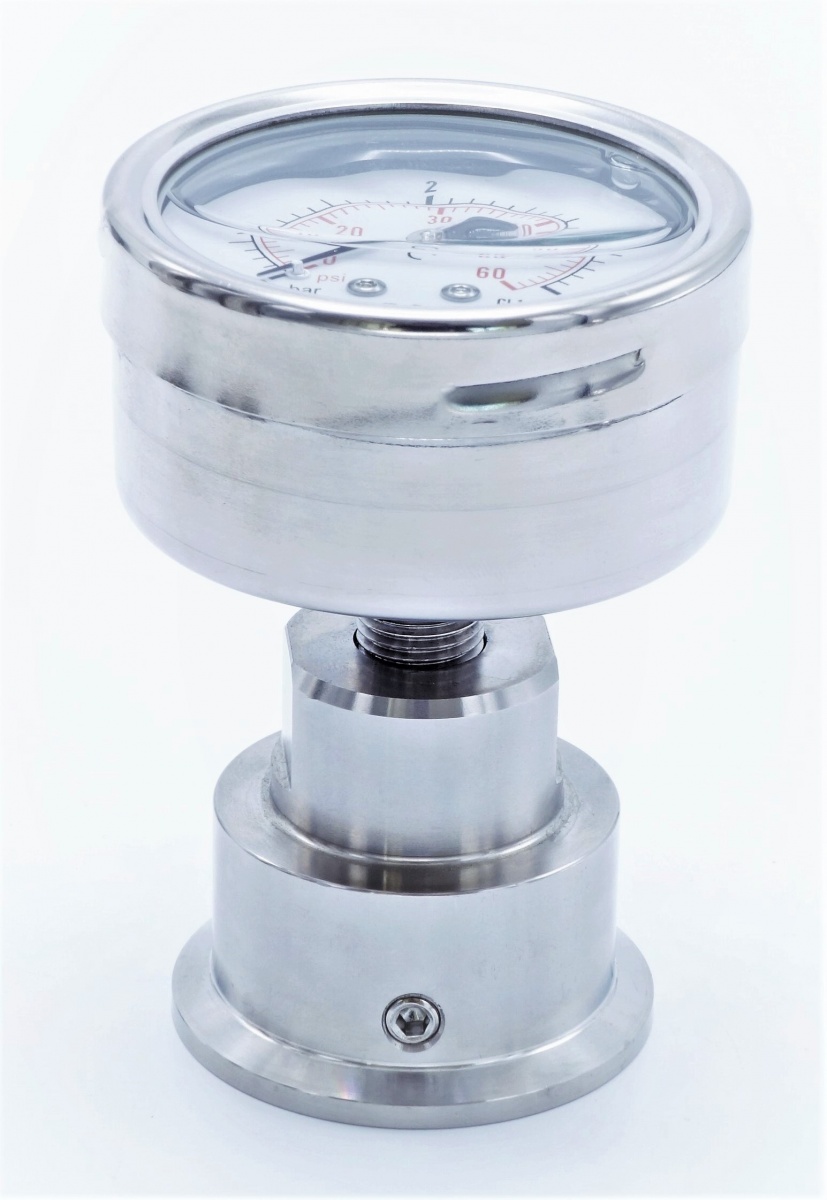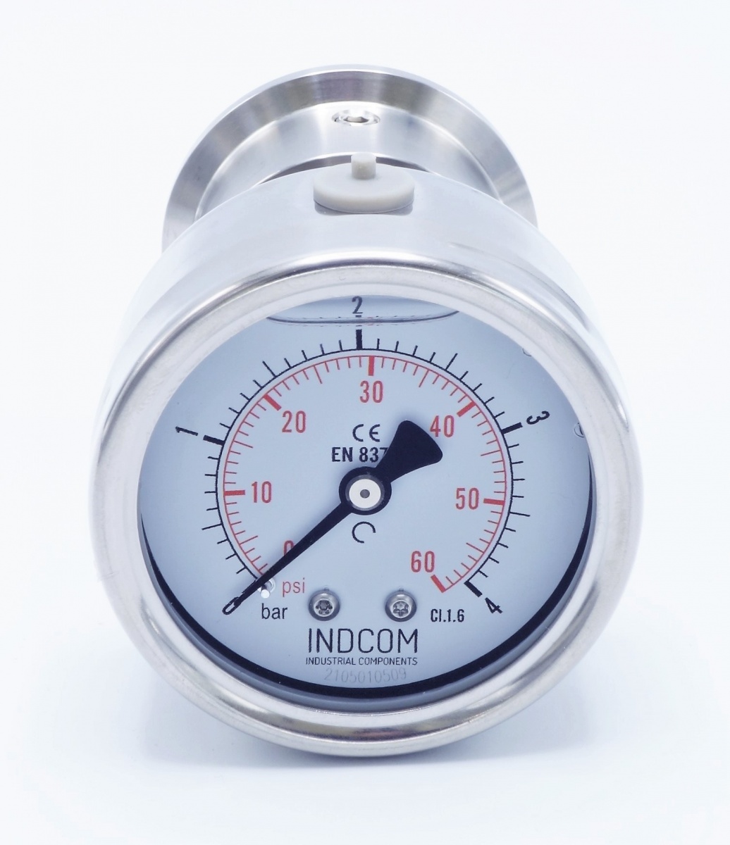 Tlakoměr, číselník 63 mm (zadní připojení), s oddělovací membránou-CLAMP DIN 32676, límeček 50.5 mm
