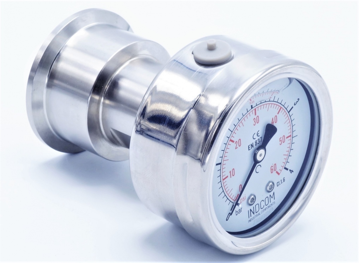 - tlakoměr je vyroben z nerezové oceli - materiál pouzdra AISI 304, materiál závitu AISI 316