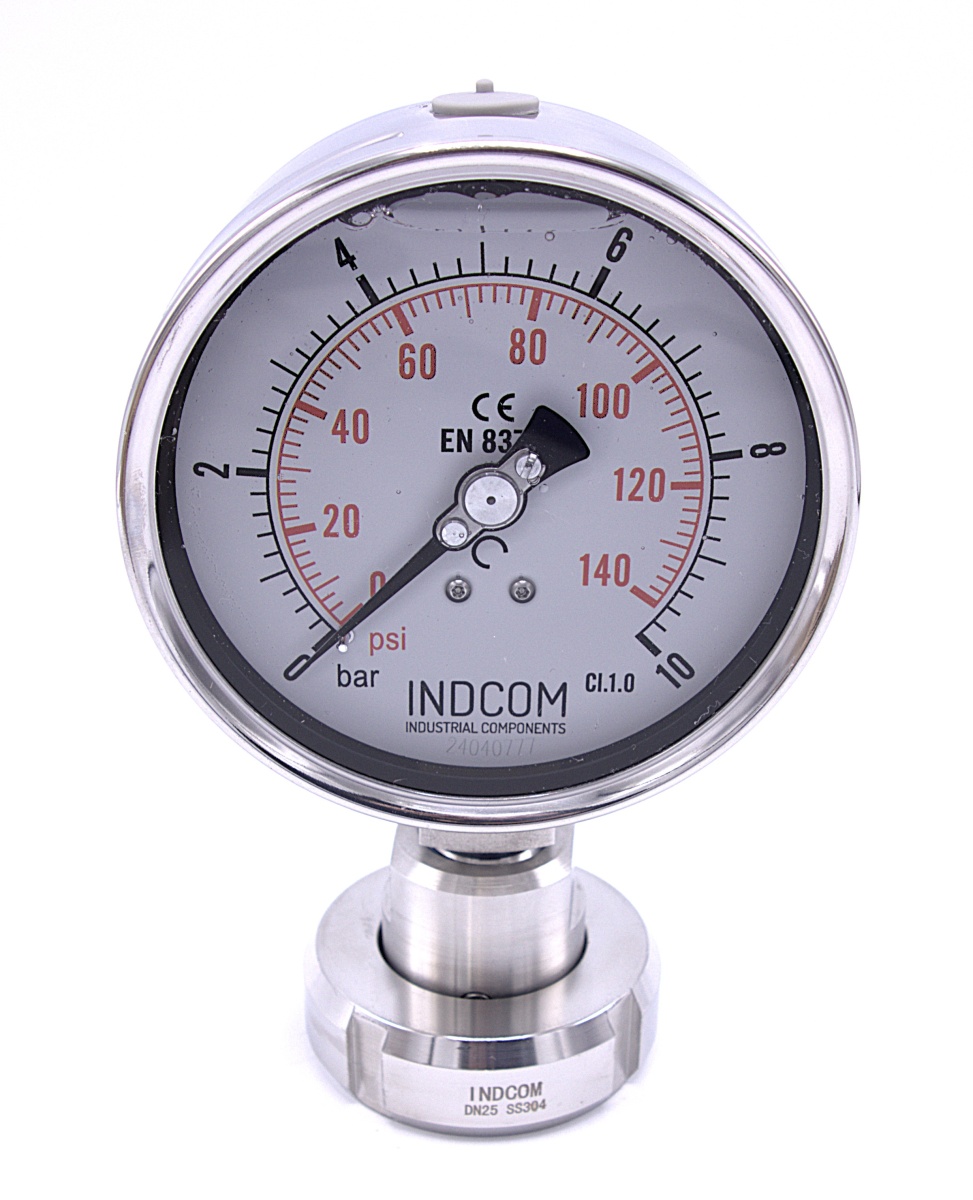 Tlakoměr s oddělovací membránou, potravinářské šroubení DIN 11851, číselník 100 mm| matice DN25