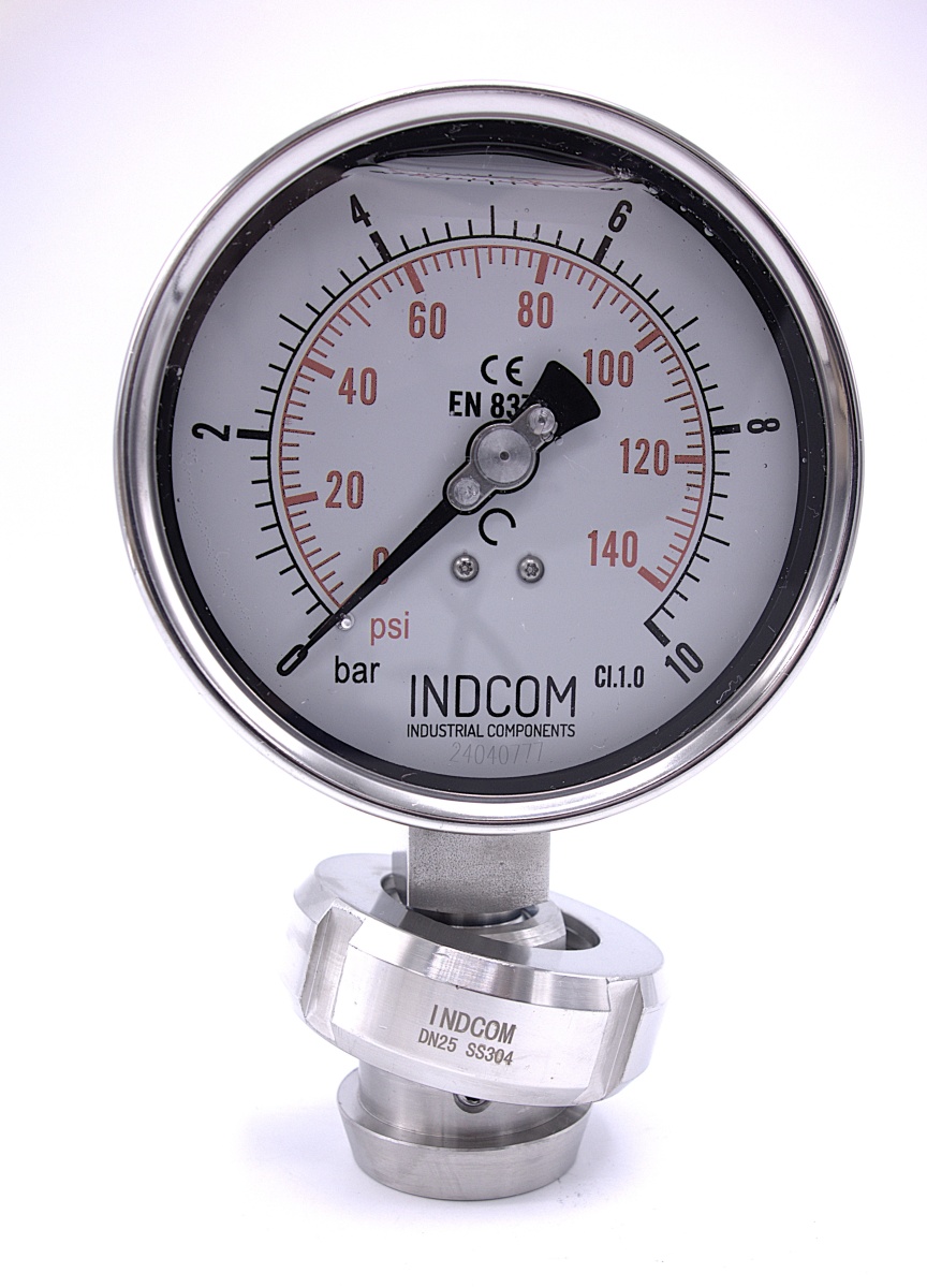 Tlakoměr s oddělovací membránou, potravinářské šroubení DIN 11851, číselník 100 mm| matice DN25