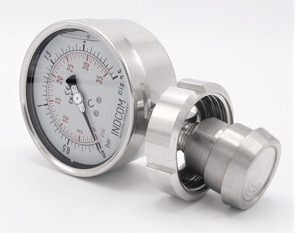 Tlakoměr s oddělovací membránou, potravinářské šroubení DIN 11851, číselník 100 mm| matice DN32