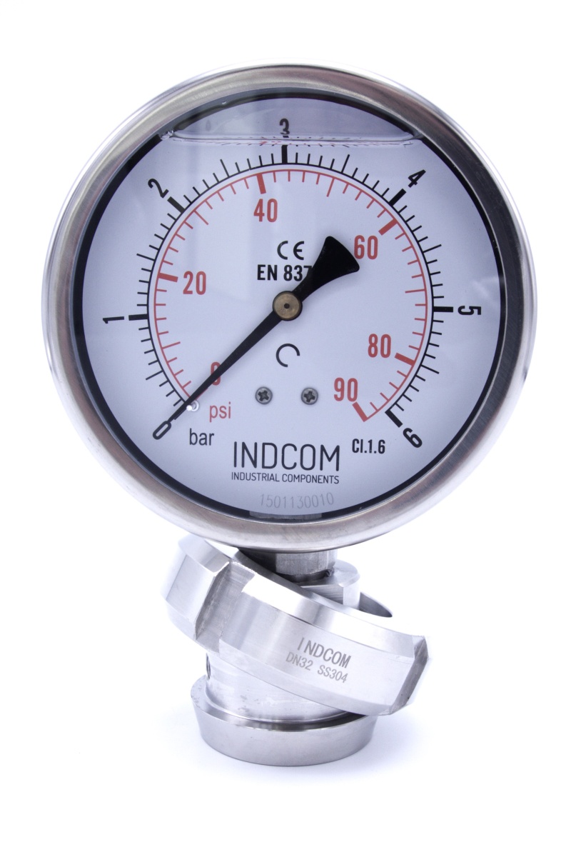 Tlakoměr s oddělovací membránou, potravinářské šroubení DIN 11851, číselník 100 mm| matice DN32