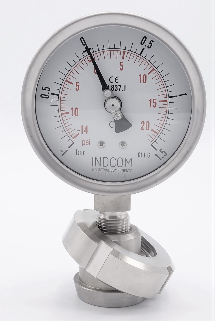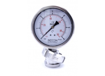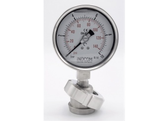 Tlakoměr s oddělovací membránou, potravinářské šroubení DIN 11851, číselník 100 mm,matice DN32