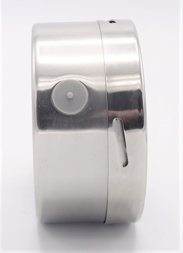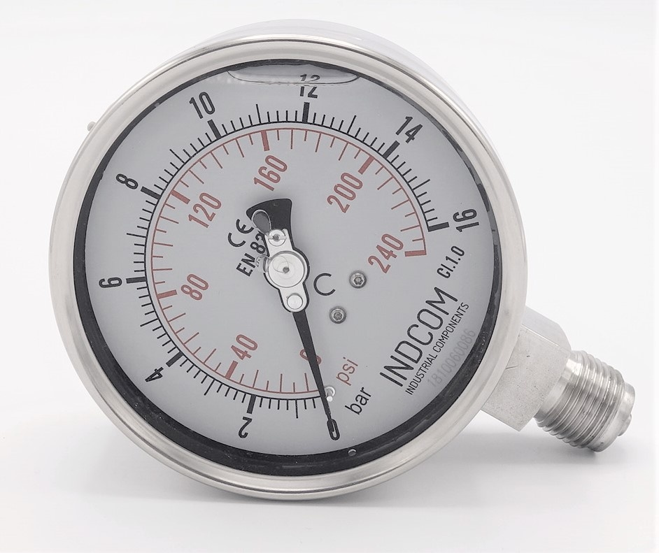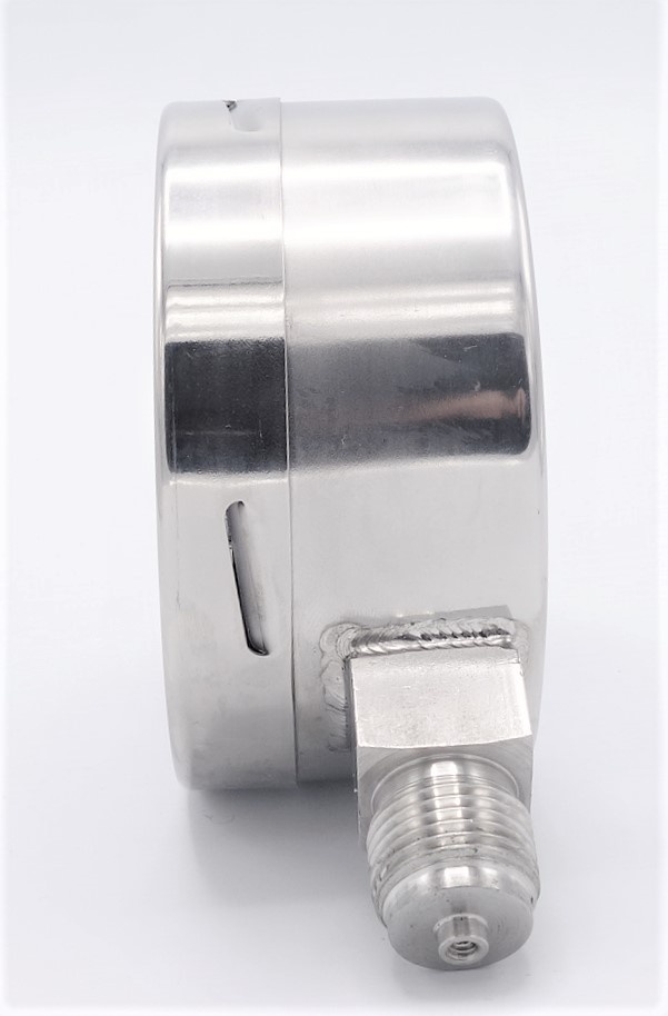- Tlakoměr je vyroben z nerezové oceli materiál pouzdra AISI 304, materiál závitu AISI 316. Snímacím zařízení je Bourdonova nerezová pružina.