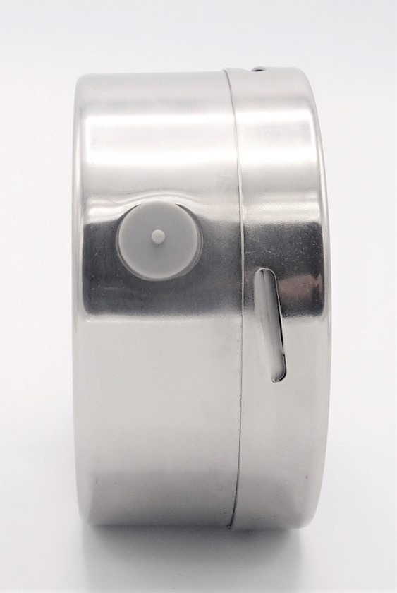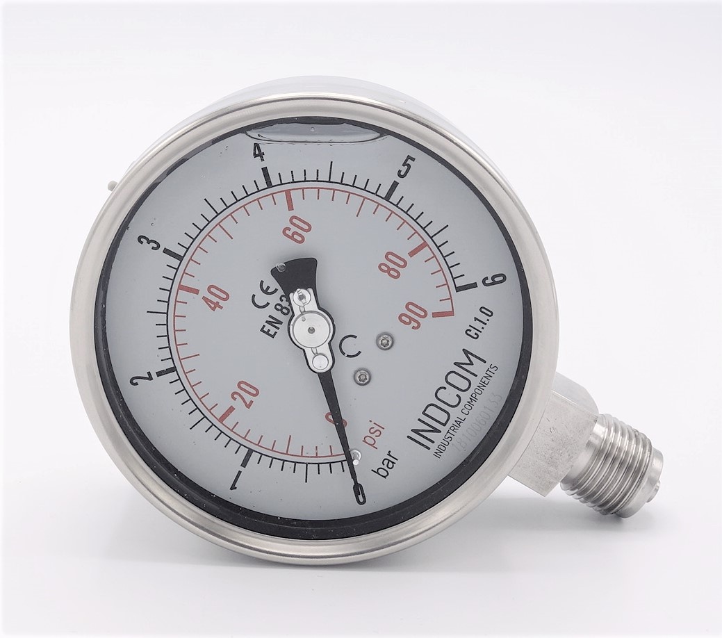 - Tlakoměr je vyroben z nerezové oceli materiál pouzdra AISI 304, materiál závitu AISI 316. Snímacím zařízení je Bourdonova nerezová pružina.